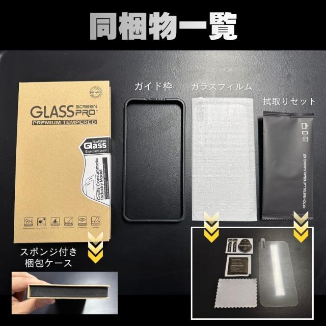 同梱物:ガラスフィルムx1、拭き取りキットx1、ガイド枠x1
