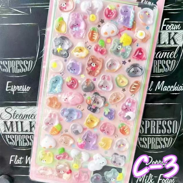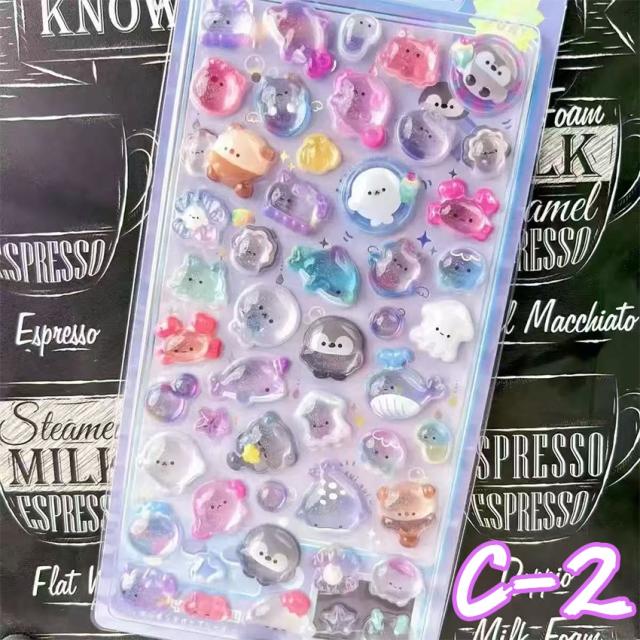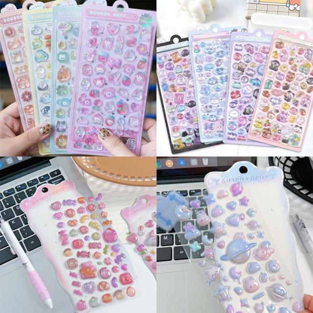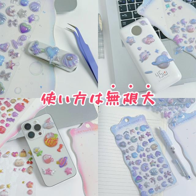 ぷくぷくシール 3dシール 手帳用 可愛い 立体 ぷっくり かわいい ステッカー 手帳 女の子 透明 台紙 用 泡ステッカー ジュエル風 手帳用 diy用 水筒用 携帯電話飾り用 手芸用 贈り物 鏡デコ アルバム