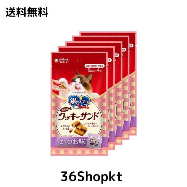 ◆商品名:【まとめ買い】銀のスプーン 猫用 おやつ お魚味クッキーサンド かつお味 24g×5 国産 キャットフード ユニチャーム
