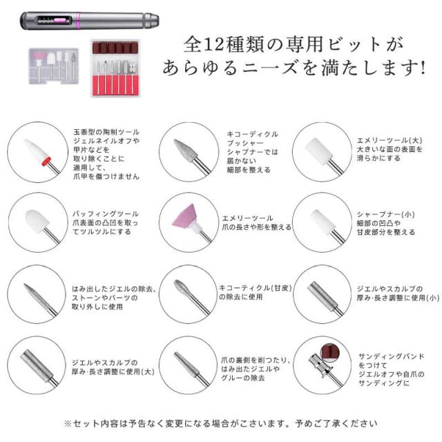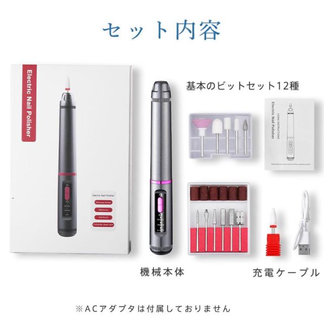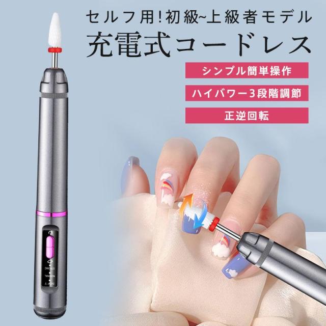 ネイルマシン ネイルポリッシャー 電動 ネイルポリッシュ ビット付き ネイルオフ 爪削り 正逆回転 爪磨き 角質除去 充電 甘皮 セルフ 変速