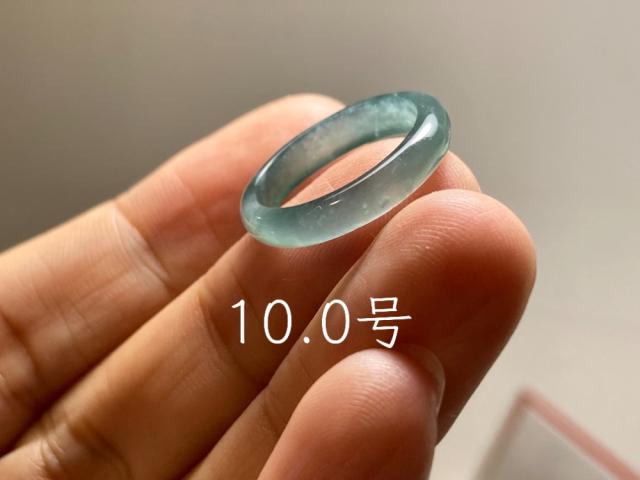 L16-95 アニバーサリーリング 氷種 10.0号 氷青緑 グアテマラ産 A貨 本翡翠 くりぬき リング