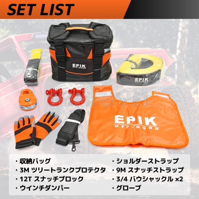 | セット内容 | ・3m ツリートランクプロテクタ ・9m スナッチストラップ ・12t スナッチブロック ・3/4 バウシャックル×2 ・ウインチダンパー ・グローブ ・収納バッグ(ショルダーストラップ付き) |