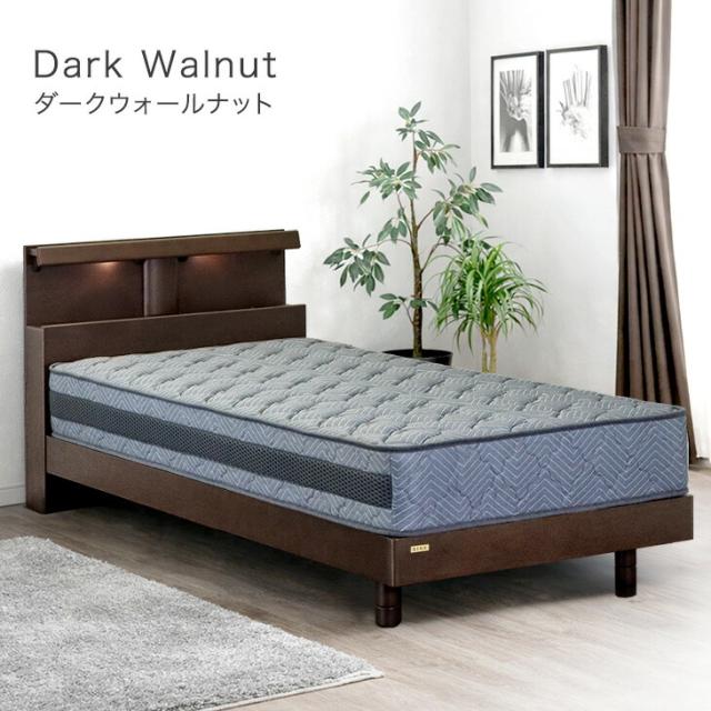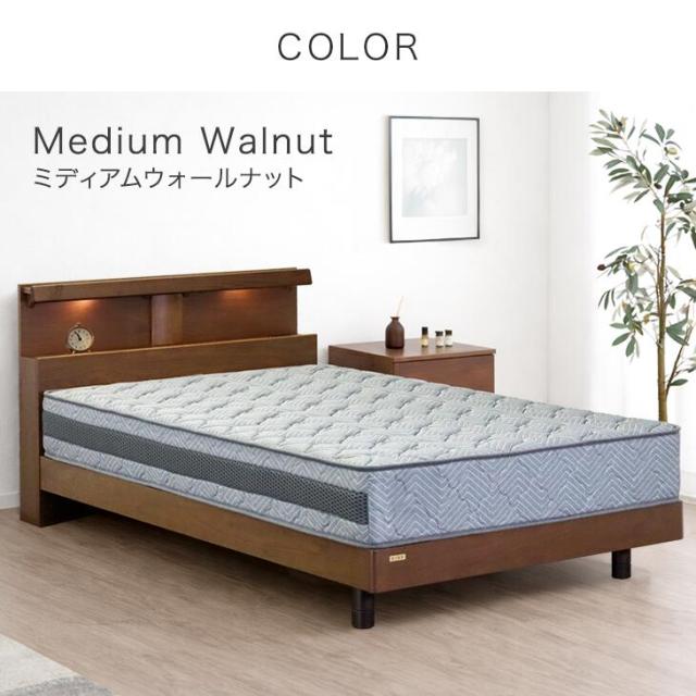 宮付き ワイドダブル ベットフレーム LED ライト 高さ3段階 ウォールナット 2口コンセント付 ライト付き ベッド ベット すのこ すのこベッド ローベッド ブラウン ナチュラル 木製 北欧 おしゃれ