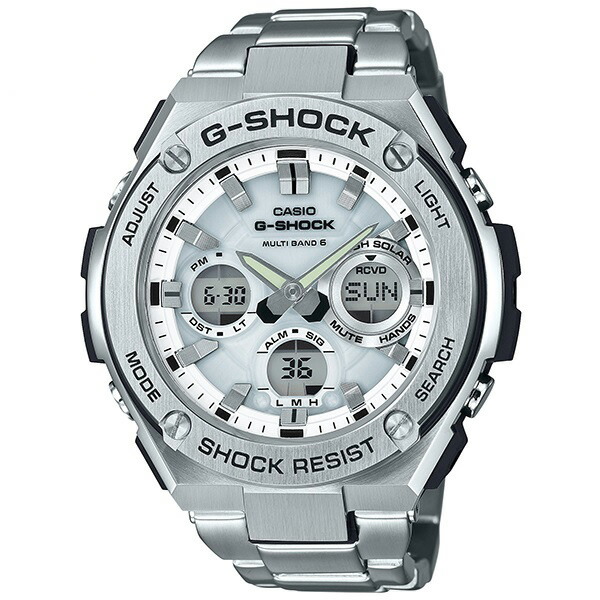 | その他特徴 | ・耐衝撃構造(ショックレジスト) ・ネオブライト ・ワンプッシュ三つ折れ式中留 ・メタルバンド(ステンレススチール) ・タフソーラー(ソーラー充電システム) 電波受信機能:自動受信(最大6回/日、中国電波は最大5回/日)/手動受信、 <日本> 受信電波:JJY、周波数:40kHz/60kHz(福島/九州両局対応モデル) <北米地域> 受信電波:WWVB、周波数:60kHz <ヨーロッパ地域>受信電波:MSF/DCF77、周波数:60kHz/77.5kHz <中国> 受信電波:BPC、周波数:68.5kHz *ホームタイム設定を受信可能な都市に設定すると、都市に合わせた局を受信します。尚、時差は選択した都市によって設定されます。 ・針退避機能(針が液晶表示と重なって見づらいときは、針を液晶表示の上から一時的に退避させることができます) ・ワールドタイム:世界48都市(31タイムゾーン、サマータイム設定機能付き)+UTC(協定世界時)の時刻表示、ホームタイムの都市入替機能 ・ストップウオッチ(1/100秒、60分計、スプリット付き) ・タイマー(セット単位:1秒、最大セット:100分、1秒単位で計測) ・時刻アラーム5本(カウントダウン機能付き)・時報 ・バッテリーインジケーター表示 ・パワーセービング機能(暗所では一定時間が経過すると表示を消して節電します) ・フルオートカレンダー ・12/24時間制表示切替 ・操作音ON/OFF切替機能 ・ダブルLEDライト ・文字板用LEDライト(フルオートライト、残照機能、残照時間切替(1.5秒/3秒)付き)、LCD部用LEDバックライト(フルオートライト、残照機能、残照時間切替(1.5秒/3秒)付き) ・フル充電時からソーラー発電無しの状態での駆動時間 機能使用の場合:約7ヶ月 パワーセービング状態の場合:約18ヶ月 ・LED:ホワイト |