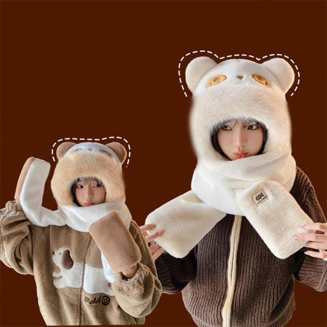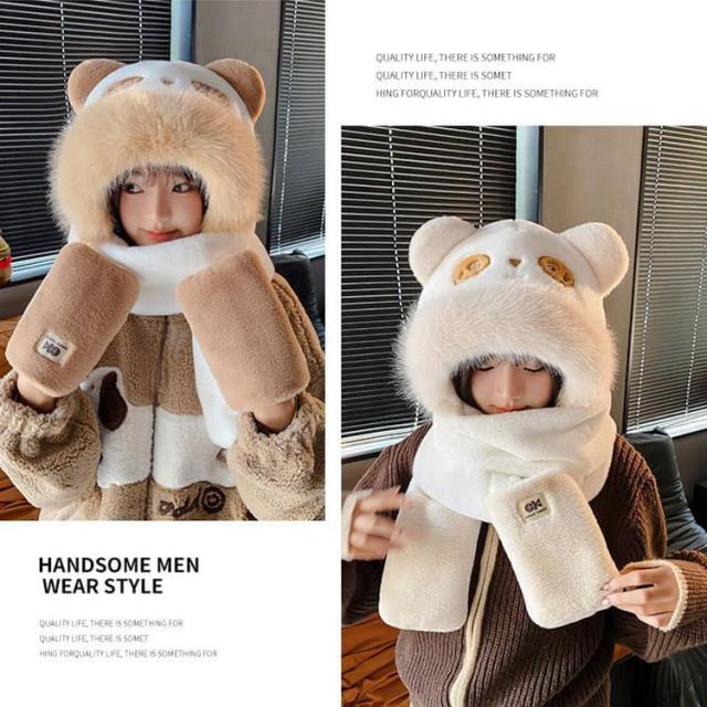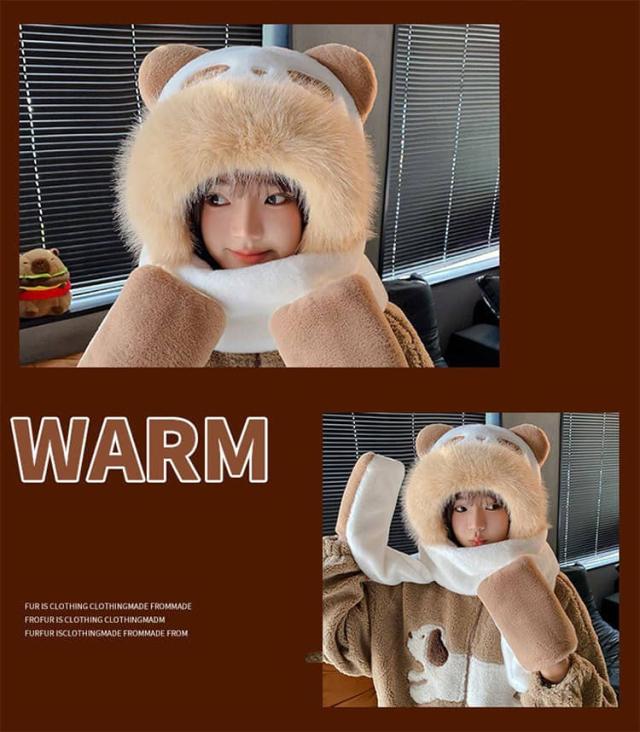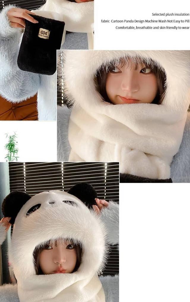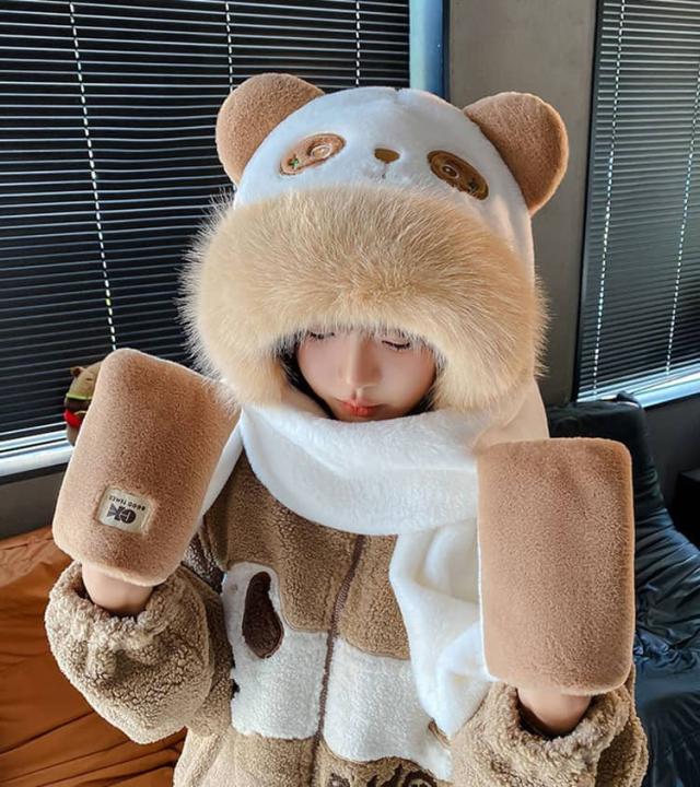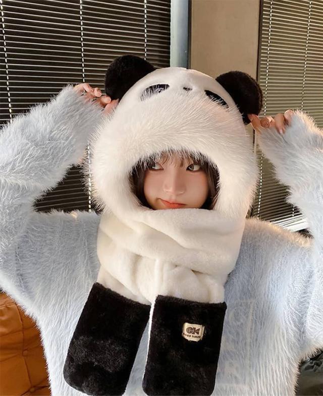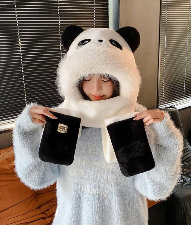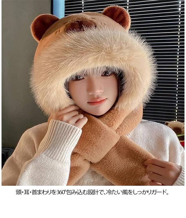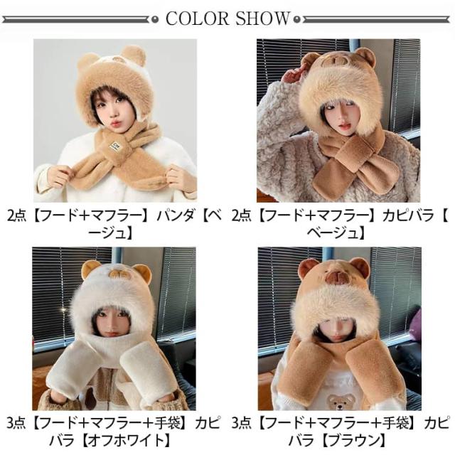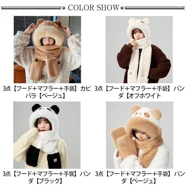 冬 防寒 一体型 一体型 フード付きマフラー 帽子 手袋 2点セット パンダ 3点セット キッズ カピバラ マフラー フードマフラー レディース フード付きマフラー 耳当て付き 自転車 通学 可愛い 暖かい あったかグッズ プレゼント