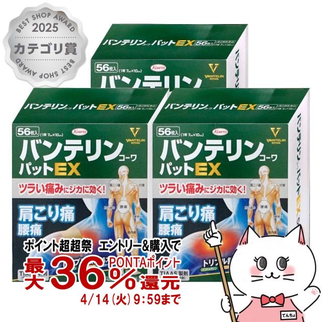 【超超祭 最大36%還元】【第2類医薬品】[セット]バンテリンコーワパットEX 56枚×3個(セルフメディケーション税制対象)[興和][肩こり・関節痛][送料無料] (6055923-set2)