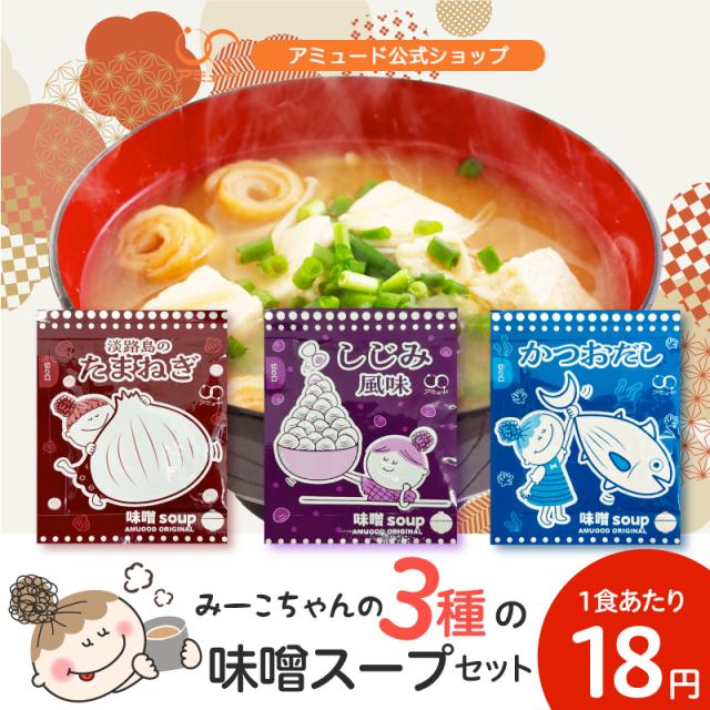 3種の味噌スープセット 淡路島 玉ねぎ たまねぎ しじみ かつお 鰹 味噌 粉末 乾燥 味噌汁 みそ汁 スープ 即席 インスタント 小袋 調味料 アミュード お弁当