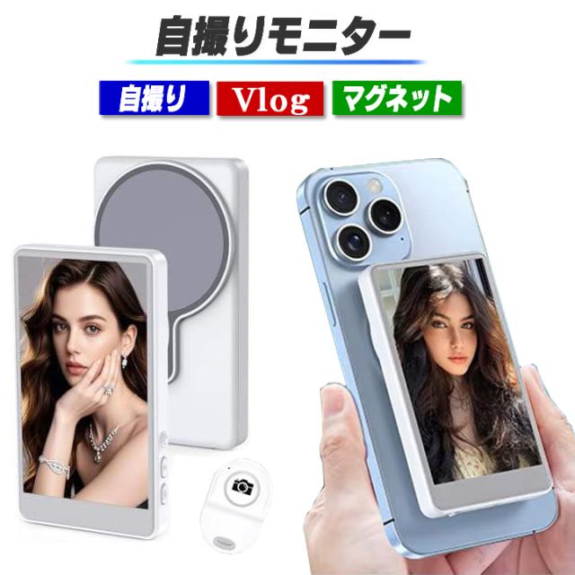 自撮り スマホ モニター 自撮りモニター Vlog ミラーリング 薄型 コンパクト 外カメラ iPhone android対応 magsafe マグセーフ 外部スクリーン 遠隔 ワイヤレス リモコン付き 撮影用 回転可能 背面カメラ 高解像度 磁石吸着 充電式 youtuber TikTok