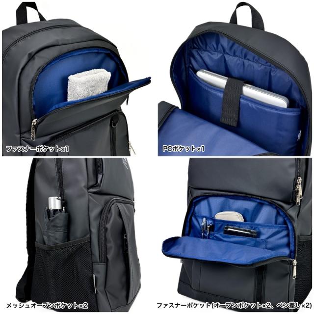 | ポケット | 【外側】メッシュオープンポケット×2、ファスナーポケット×4(内1つオープンポケット×2、ペン差し×2) 【内側】クッションポケット×1 |