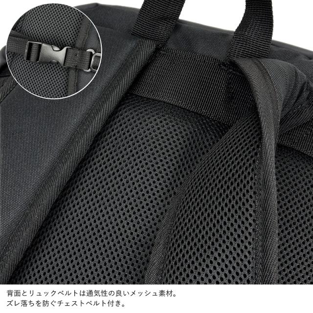 背面とリュックベルトは通気性の良いメッシュ素材。