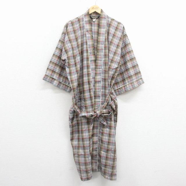 古着 長袖 ガウン 羽織 メンズ 90年代 90s 大きいサイズ ロング丈 USA製 グレー他 チェック 25dec19