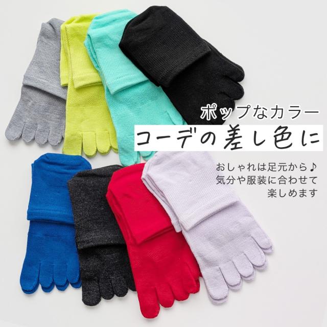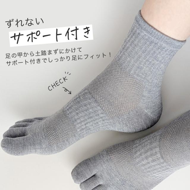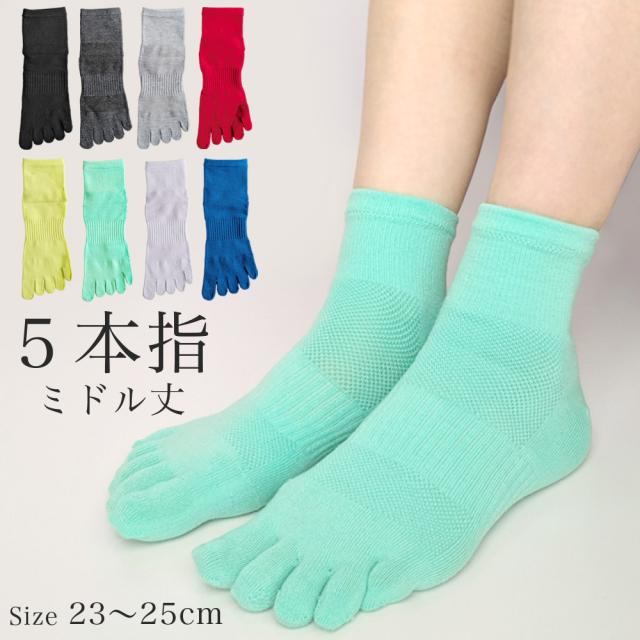 靴下 レディース 5本指 ミドル丈 シンプル サポート付き ソックス スポーツ ランニング 運動 通気性 メッシュ