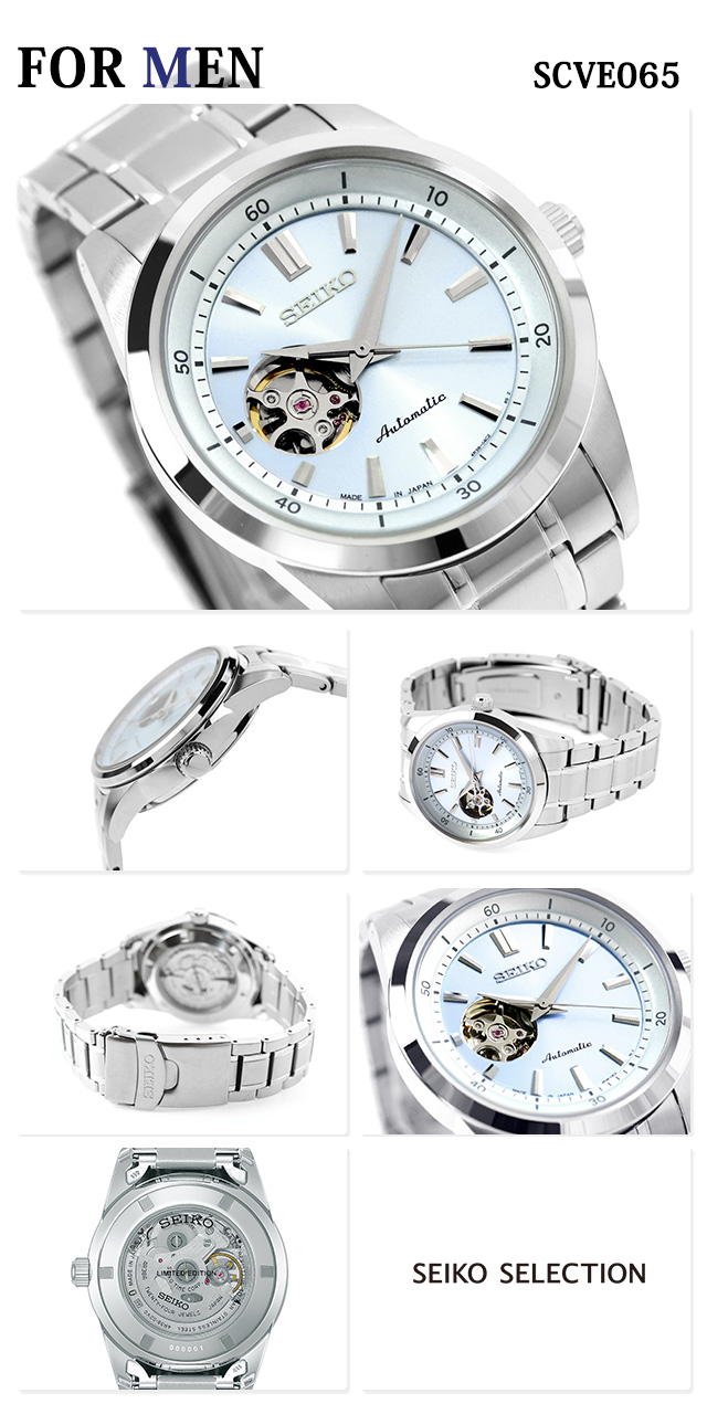 正規品 7年保証キャンペーン 送料無料 ペアウォッチ セイコーセレクション 自動巻き メンズ レディース 腕時計 pair-seiko158 SEIKO SELECTION アナログ ライトブルー ◆メカニカルラインにトレンドカラーを取り入れた、数量限定のペアウォッチ。スタンダードなケースに水色の放射目文字板を組み合わせ、性別や季節を問わず幅広いコーディネートに馴染みます。メンズモデルはダイアカットを施したくさび形略字と峰のある針が上品に輝き、オープンハートやスケルトンバックから機械式ならではの鼓動を堪能。レディースモデルは同デザインで手元を爽やかに演出し、日常から特別な日まで活躍します。記念日や誕生日、ペアギフトとしても最適な限定モデルです。 【メンズ】数量限定1000本【レディース】数量限定400本 メンズ品番:SCVE065 レディース品番:SSDE025