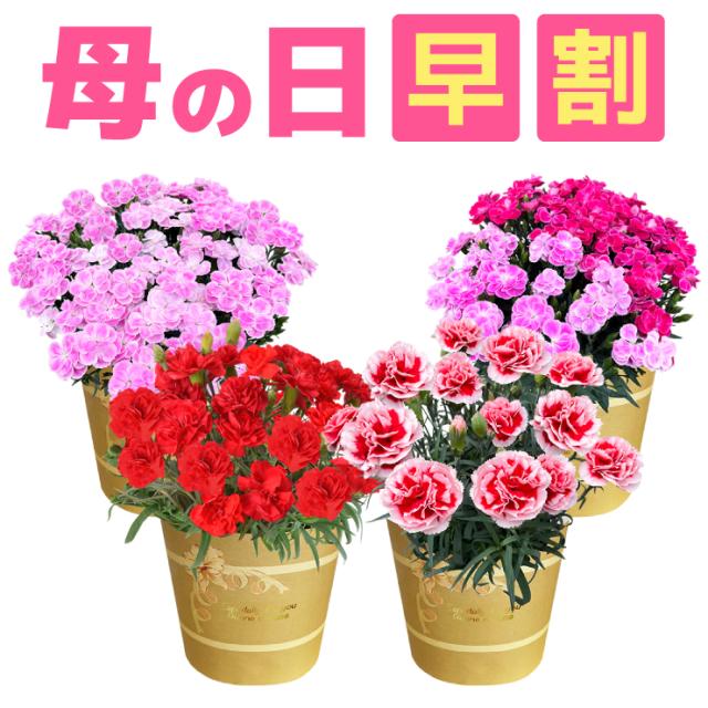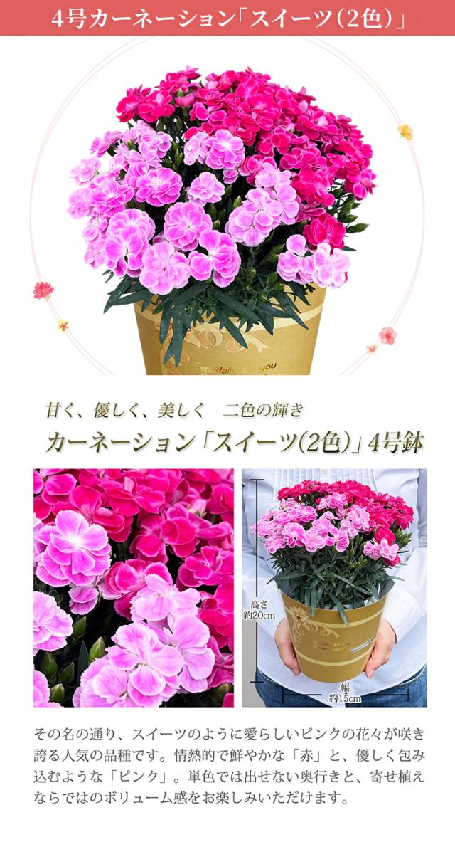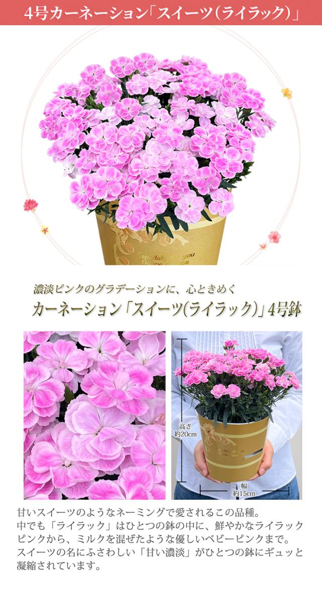 母の日 早割 ギフト カーネーション 花鉢 鉢植え プレゼント 花 母の日の花 2026 鉢花 4号 鉢 お花 東北〜関西 送料無料 おしゃれ かわいい 母の日ギフト 母の日プレゼント いちごホイップ さくらもなか 花のギフト社