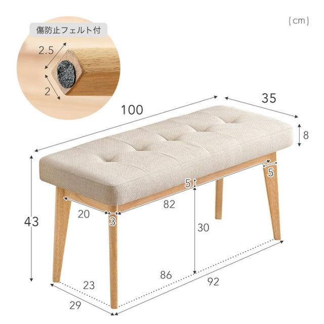 ファブリック ダイニング ベンチ 100cm ダイニングベンチ ベンチチェア ベンチチェアー リビングベンチ 長椅子 長 椅子 ベンチ椅子 食卓 玄関 リビング 2〜3人 2人 3人 3人掛け 2人掛け 木製 ダイニングチェア モダン シンプル カフェ 北欧