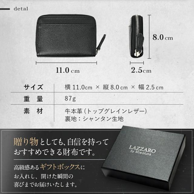 ミウォルナ Miwoluna ラザロ LAZZARO メンズ コインケース 小銭入れ メンズ 本革 トップグレインレザー ブラック ファスナー お札入れ