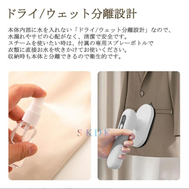 アイロン コードレスアイロン 乾湿両用 ハンディーアイロン ドライアイロン ハンガーにかけたまま フッ素コート 収納ケース付き シワ伸ばし ミニアイロン 3段階温度調節 軽量 小型 家庭用 ポリエステル/シルク/リネン/コットン生地対応