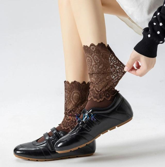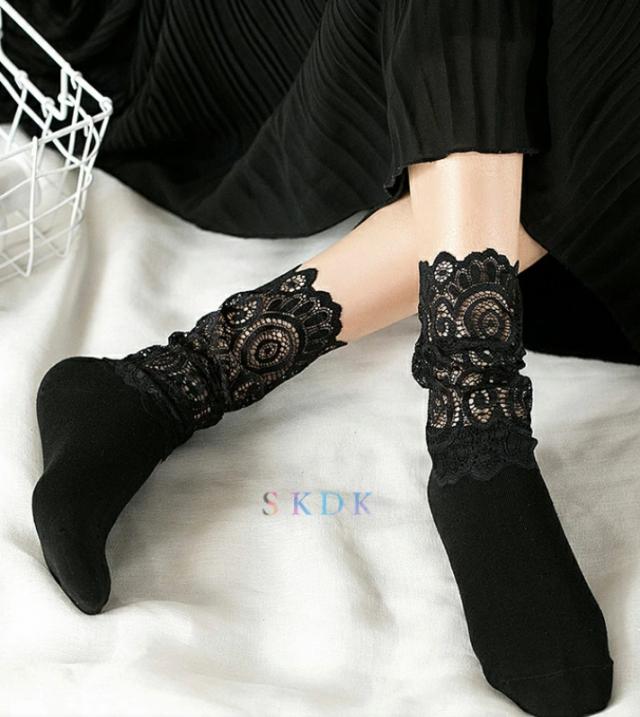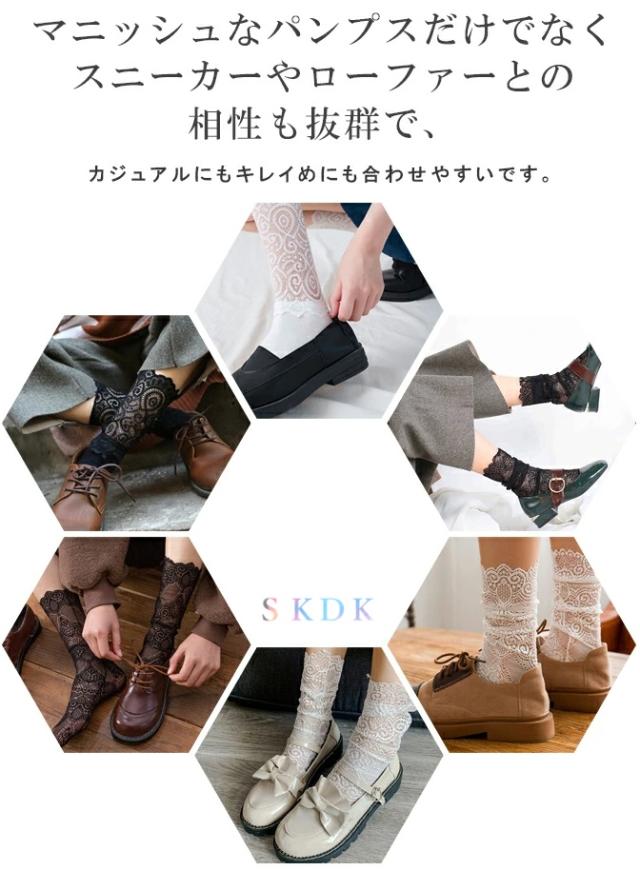 【3足セット!自由選べる】 花柄レースソックス レッグウェア レディース 総柄レース 透け透 雰囲気パンプス用 スニーカー用 透け感 コットン混 伸縮性
