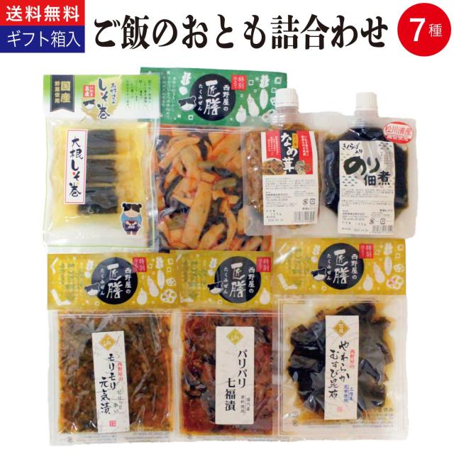 送料無料。西野屋の人気のご飯のお供7種を詰合せました。
