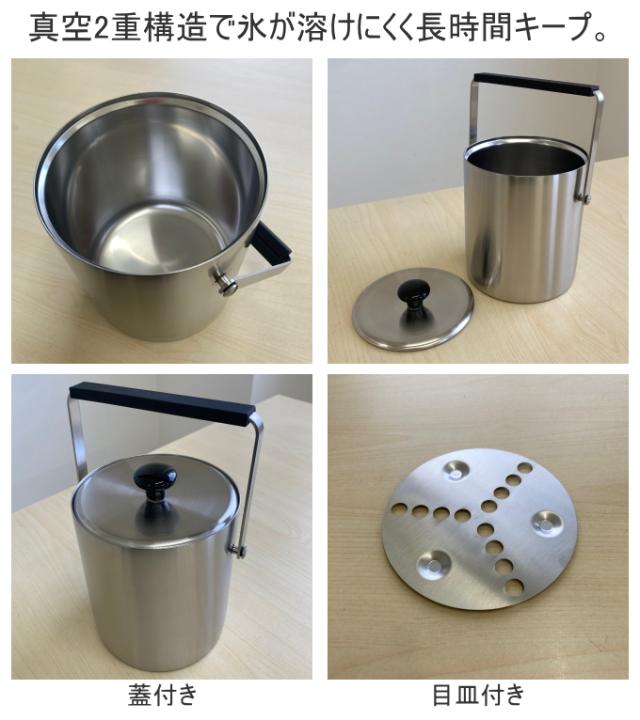 真空2重アイスペール 目皿・蓋付 YUI-1800 日本製 送料無料 アイスペール 蓋付き 氷 氷入れ 溶けにくい カクテル お酒 パーティー オシャレ おしゃれ 高級感 ステンレス製 シルバー 真空2重構造 保冷 便利グッズ SHIBUKI