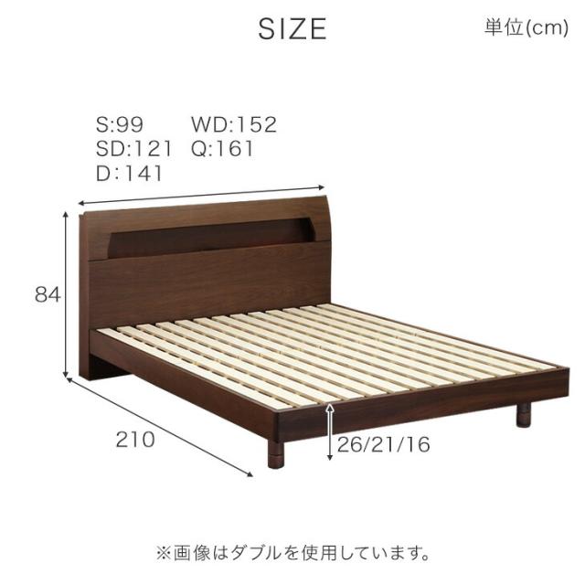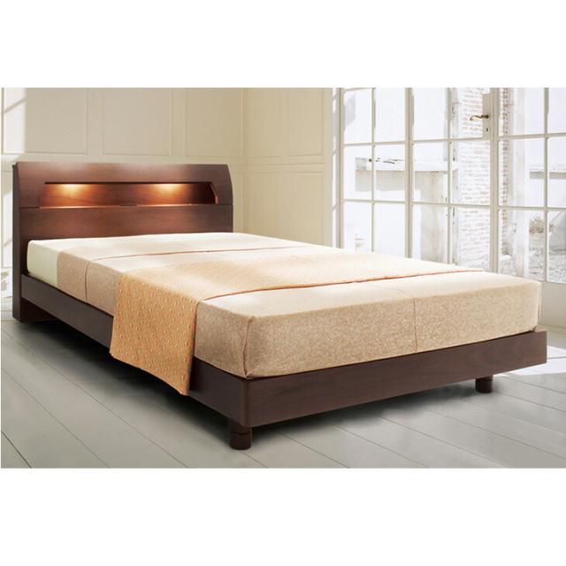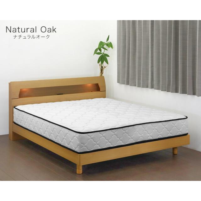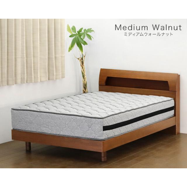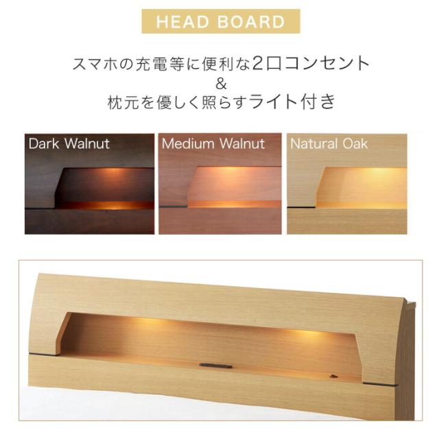 【正午〜P5%還元】 天然木 ウォールナット オーク 宮付き ワイドダブル ベッド LED 2口コンセント付 ベッドフレーム ベットフレーム 高さ3段階 ベット すのこ すのこベッド ローベッド ライト コンセント 北欧 おしゃれ