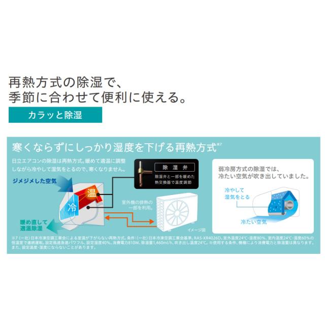 再熱方式の除湿で、季節に合わせて便利に使える。