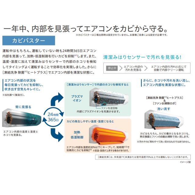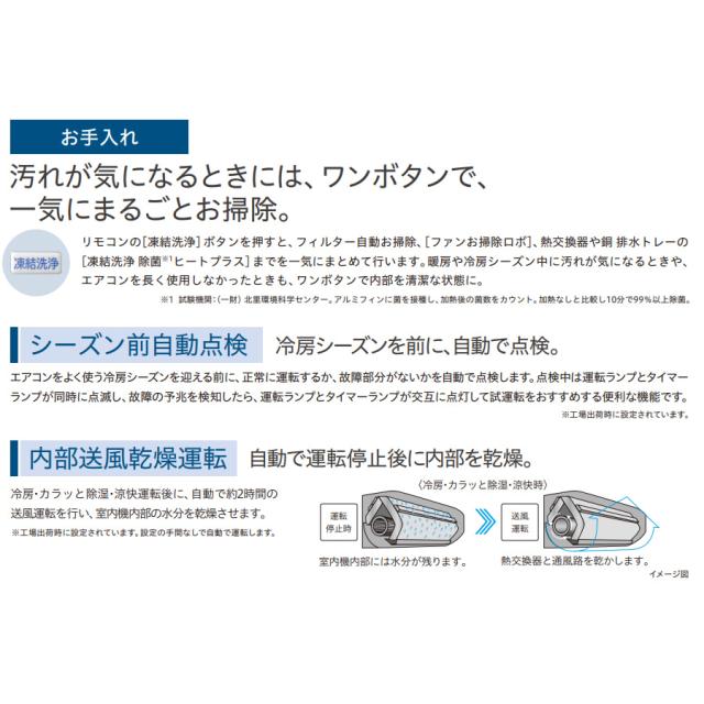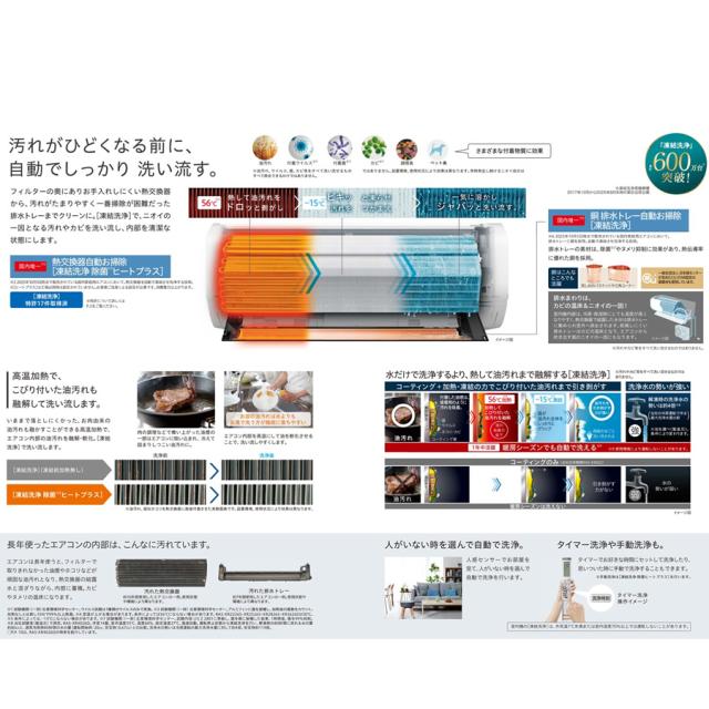 [LAB制御]・[凍結洗浄 除菌ヒートプラス]・[ファンお掃除ロボ]・[Premiumプラズマ空清]・[凍結脱臭クリーナー]搭載プレミアムモデル
