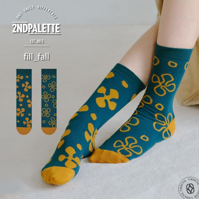 【左右非対称デザインソックス】 2nd PALETTE セカンドパレット フィルフォール 豊かな実りの秋 クルーソックス アシンメトリー 靴下 レディース くつ下 ( MOC012 ) fill fall 日本製 ギフト フットウェア urbene アーベン