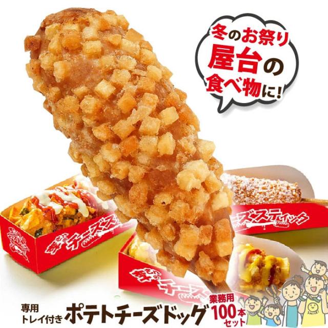業務用 冷凍 ポテトチーズハットグ 100本セット インスタ映え抜群おしゃれなトレイ付き ポスター・のぼりPDFデータ付き 送料無料 縁日・お祭りの出店・屋台・キッチンカーの食べ物に!