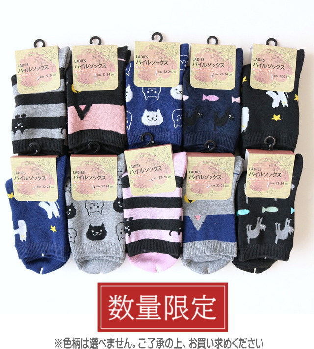 猫柄 靴下 色柄 おまかせ 【5足セット】 福袋