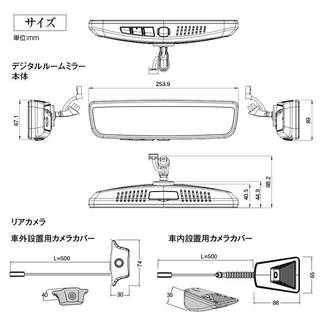 リアカメラはIP67防水対応。カメラカバーを付け替えることで車内・車外設置の両方に対応します。 - ミラーモード切替