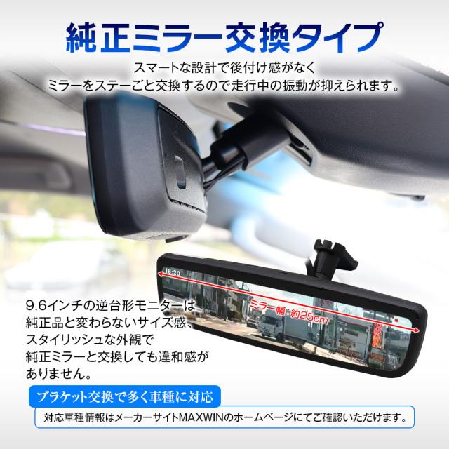 デジタルルームミラー 純正ミラー交換 最大3年保証 60fps リアカメラ 車内 車外 高輝度液晶 電波干渉対策済 HDR ズーム/アングル調整 MAXWIN MR-PRO-S