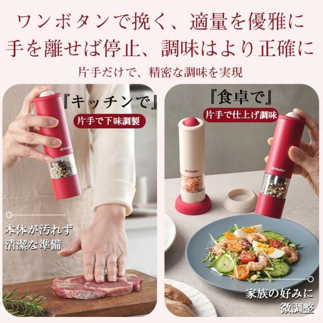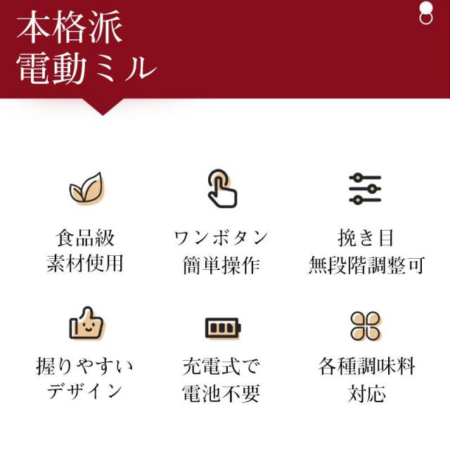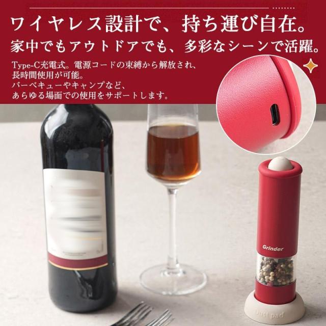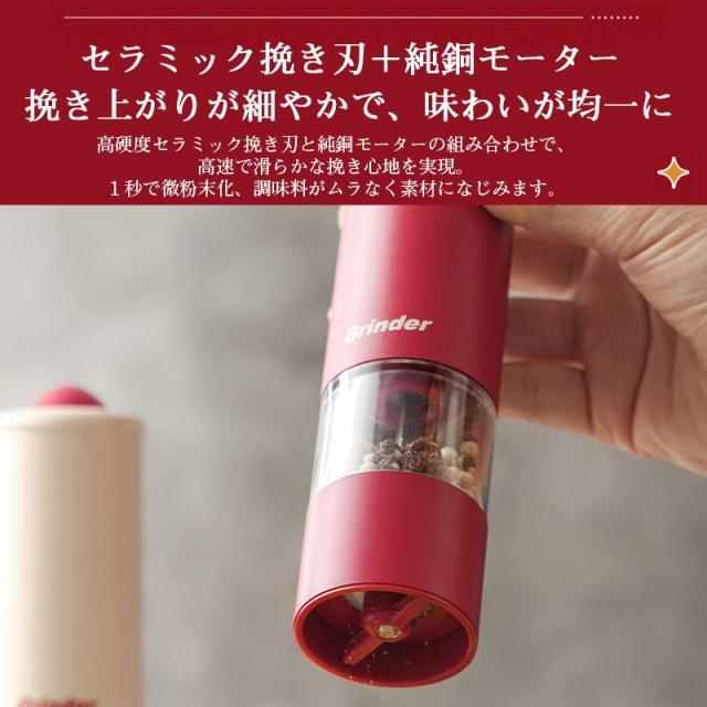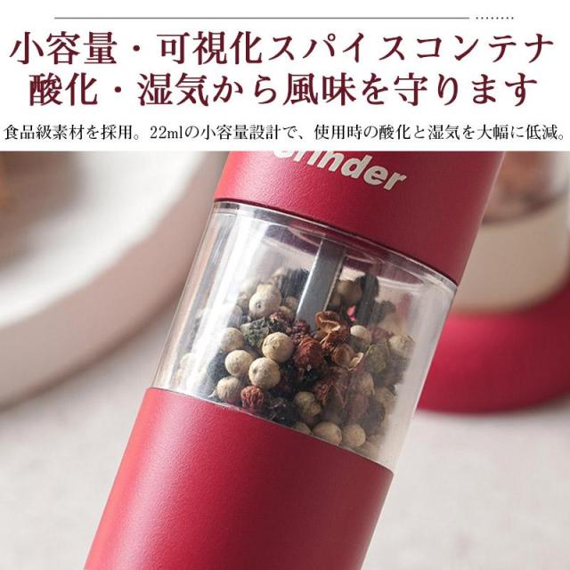電動ミル 充電式 スリム 電動 ペッパー ペッパーミル 充電式ミルソルト 胡椒 岩塩 スパイスミル 調味料挽き