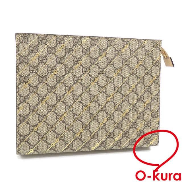 中古 グッチ GGスプリーム クラッチバッグ レディース ベージュ ゴールド PVC レザー 774345 セカンドバッグ