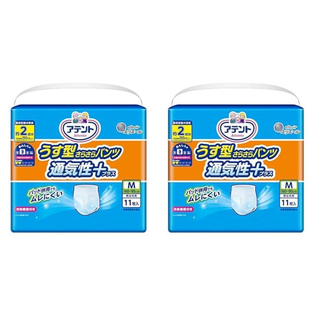 アテント うす型さらさらパンツ 通気性プラス M 男女共用 2回吸収 11枚【介助があれば歩ける方】 (× 2)