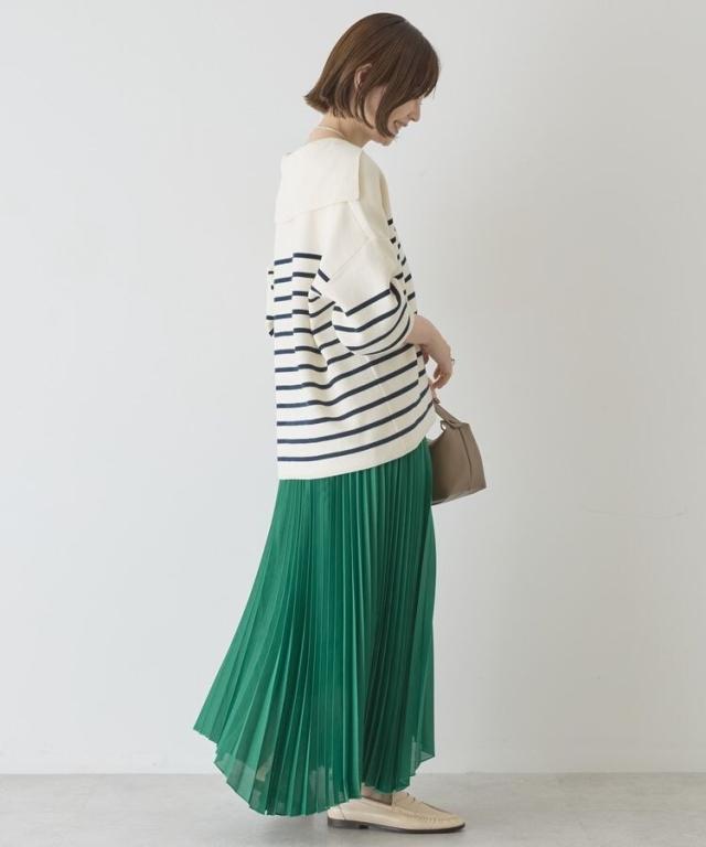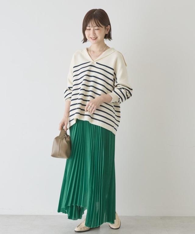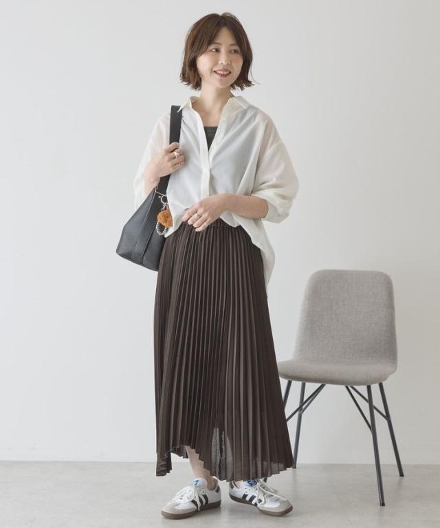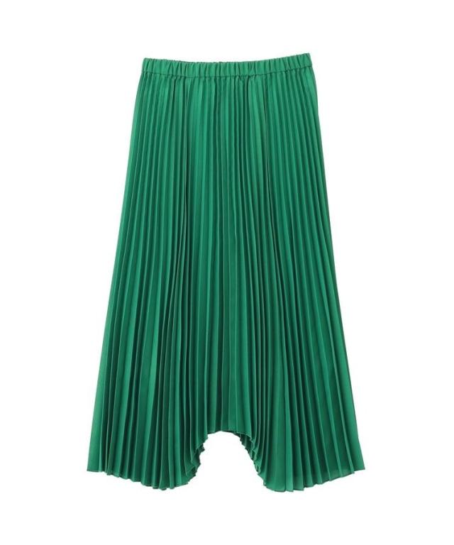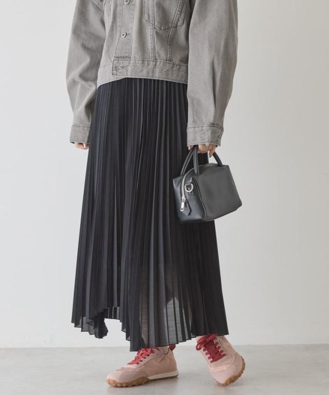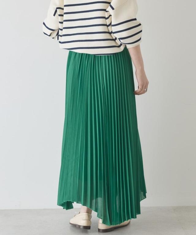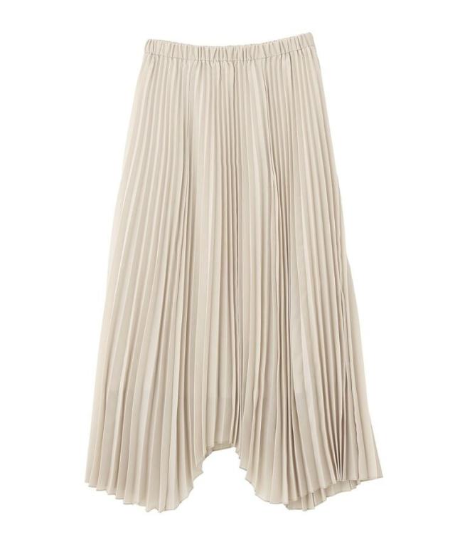 選べる丈で、自分らしい軽やかさを楽しめますやわらかなシアー素材に細かなプリーツを施し、空気を含んだような軽快な表情に仕上げています。歩くたびに自然なドレープが生まれ、体のラインを拾いにくいため安心感のある着用感です。ウエストはゴム仕様で着脱がしやすく、リラックスしたはき心地が続きます。丈を選べるため、足元のバランスやコーディネートの雰囲気に合わせて最適な一着を選べます。アシメヘムのデザインが単調になりがちなスタイルに動きをプラスし、シンプルなトップスとも好相性です。カジュアルな装いに取り入れるだけで、程よく大人の雰囲気を演出できます。日常使いからお出かけまで活躍し、着回し力と上品さを兼ね備えた便利なアイテムです。