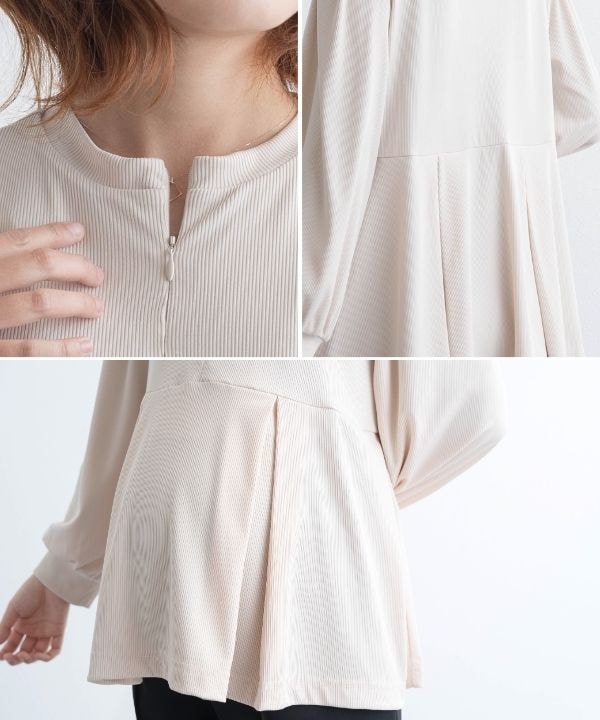 フロントジップ ペプラムトップス [マタニティ 授乳 産前産後]