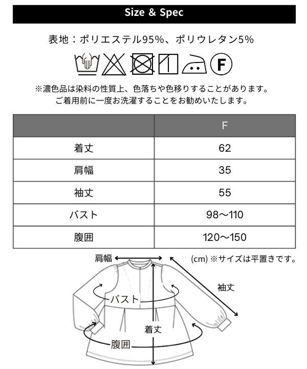 ウエスト位置から広がるタックを入れたペプラムデザインが、お腹まわりをふんわり包み込み、体型変化にもやさしく対応。