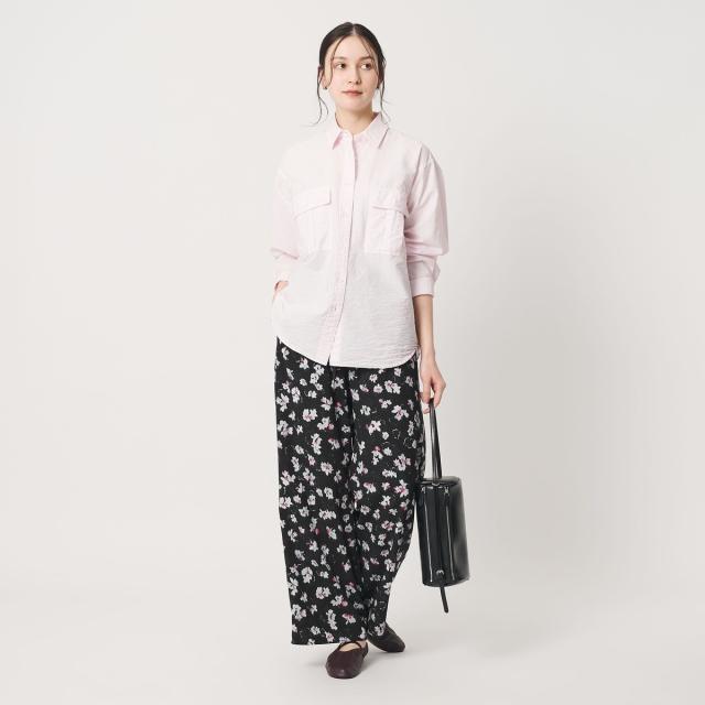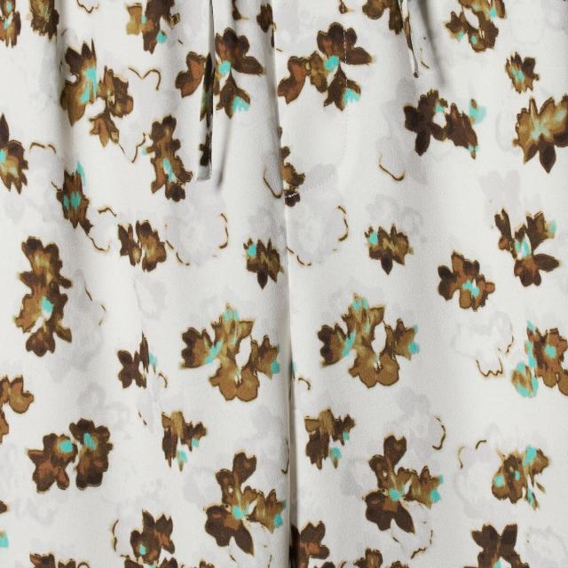 装いに華やかさを添えるフラワープリントのワイドパンツ。
