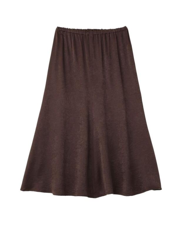 光沢のあるサテンで仕立てたマーメイドシルエットスカート。細めのウエストは総ゴム仕様で内紐により調節が可能です。ウエスト周りの分量を調整し、お腹まわりがすっきり見えるよう設計しました。両脇にスリットを入れて足さばきも良く、デイリーからきれいめスタイルまで幅広く活躍します。Tシャツやスウェットはもちろん、コクーンシルエットのトップスと合わせるのもおすすめ。