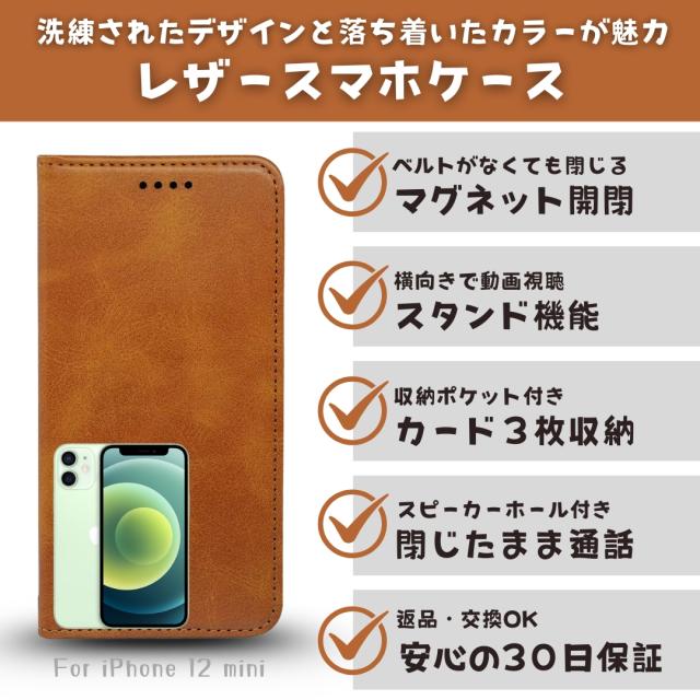 iPhone 12 mini アイフォーン 12 mini 手帳型 高品質レザー 手帳 カバー スマホケース スタンド機能付き マグネット開閉 カード収納付き