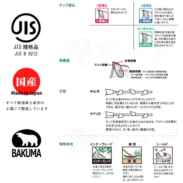 刈払機用チップソー バクマ 草刈王 軽量 255×36P 20枚 草刈りチップソー 替刃 刈刃 草刈機用 JIS規格 [法人様限定]