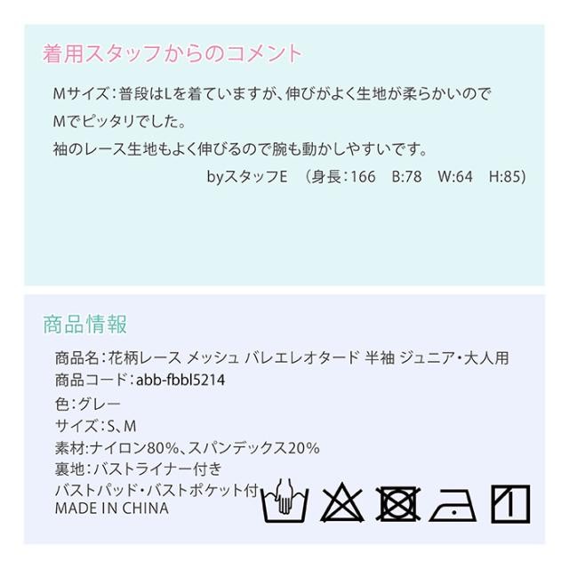 商品名:花柄レース メッシュ バレエレオタード 半袖 ジュニア・大人用