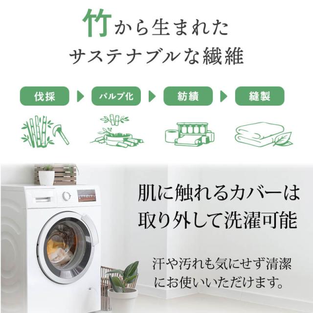 | 素材 | カバー:ポリエステル60%、バンブーレーヨン40% 中材:3Dファイバー(POE) | |