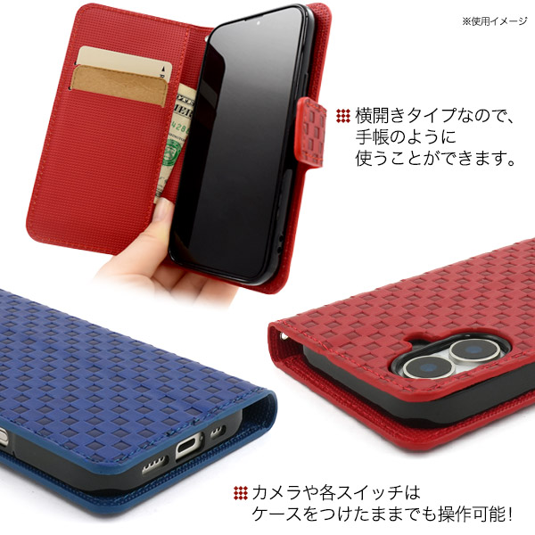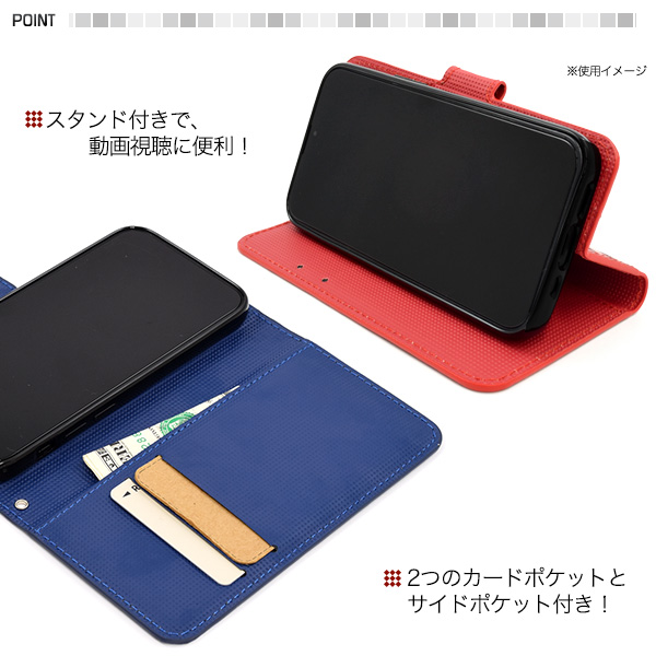 存在感抜群!市松模様レザーデザインの手帳型ケース。 衝撃やキズなどからスマホを守ります。 また、内部はソフトケースなので着脱が簡単です。 背面を折り返すとスタンドとして使用できるので、動画視聴に便利です。 落下防止に便利なストラップとストラップホール付きです。 横開きタイプなので、手帳のように使うことができます。 また、内側に2つのカードポケットとサイドポケットが付いています。 |