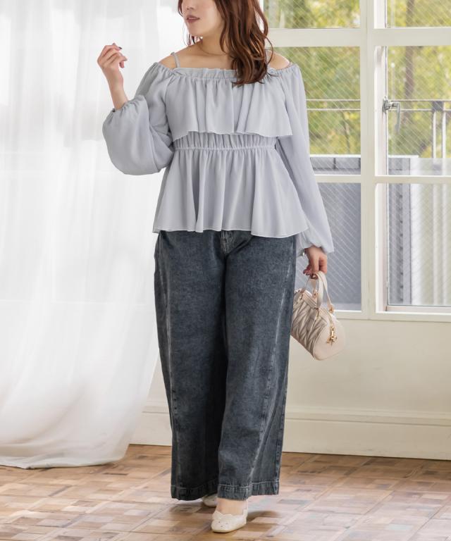 大きいサイズ/レディース/3L/4L/ルーズワイドデニムパンツ