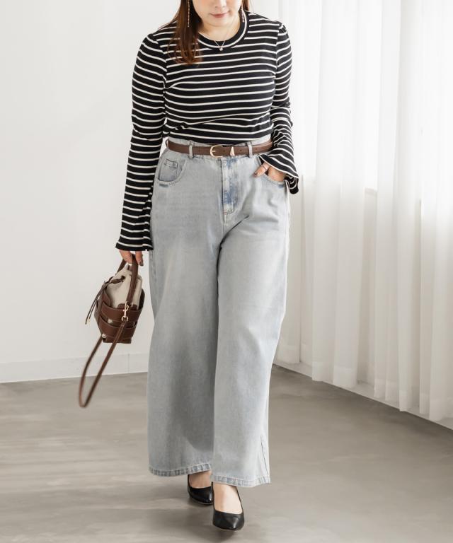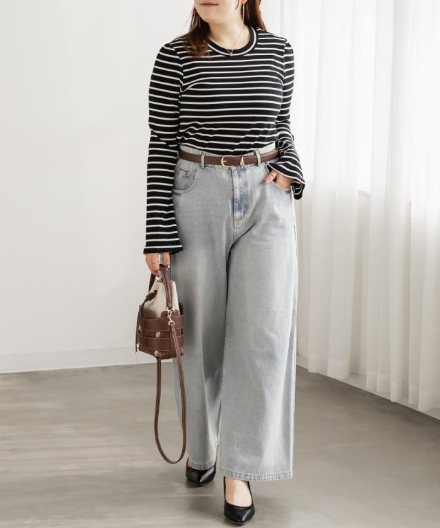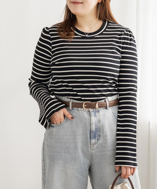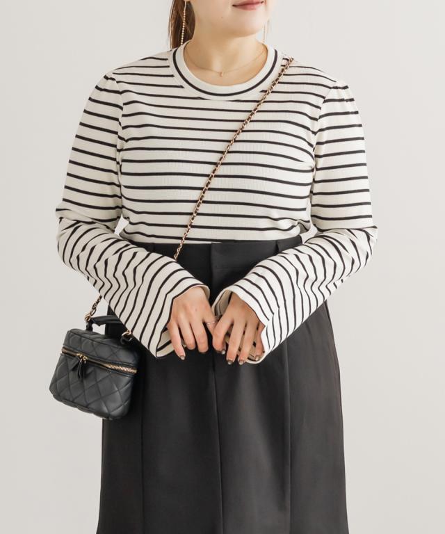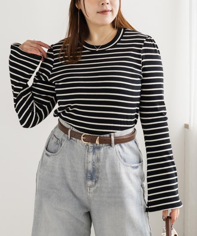 大きいサイズ/レディース/LL/3L/4L/CLETTEオリジナルフレア袖ボーダーカットソー