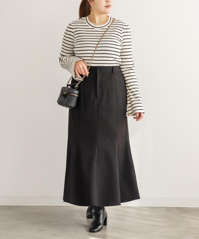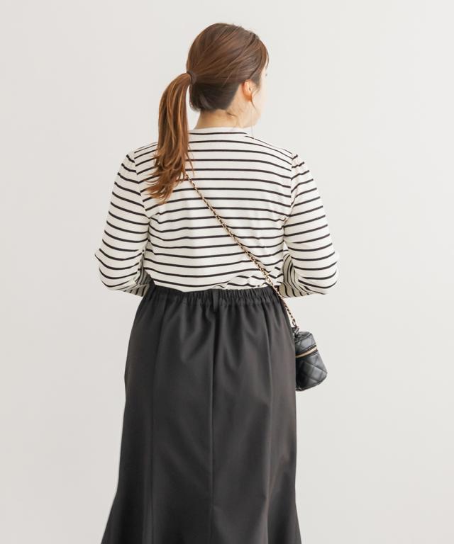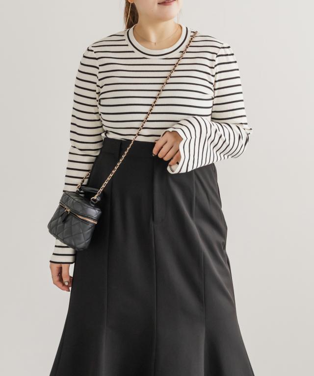 | 3Lを着てちょうどいいサイズでした。程よくしっかりとしたカットソー素材で、たくさん着たくなる着心地の良さです◎絶妙な細さのボーダーで、着ぶくれせず大人っぽい雰囲気で着こなせます。プチハイなのも抜け感があってすっきりと着ることができます!一見カジュアルアイテムだけど、あわせるアイテムやボトムによってフェミニンにもなれるし、おしゃれな印象に仕上がる1枚です! |