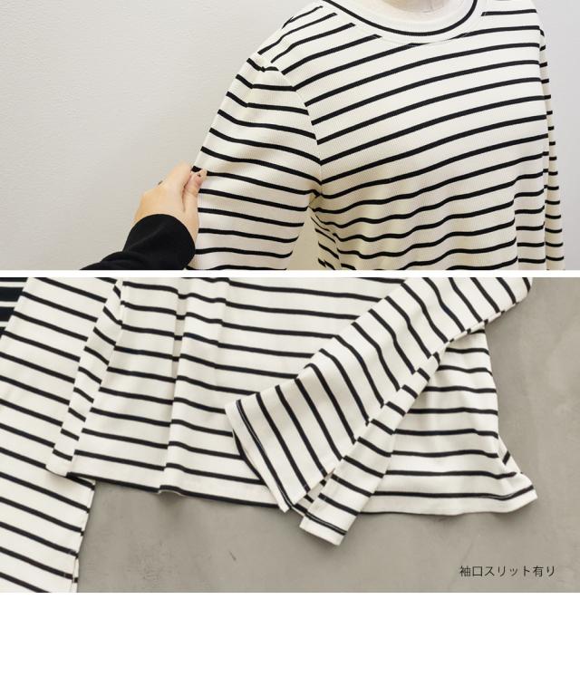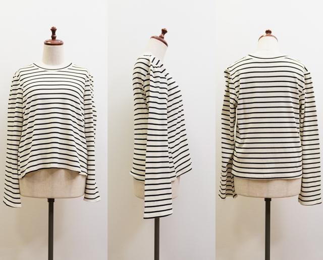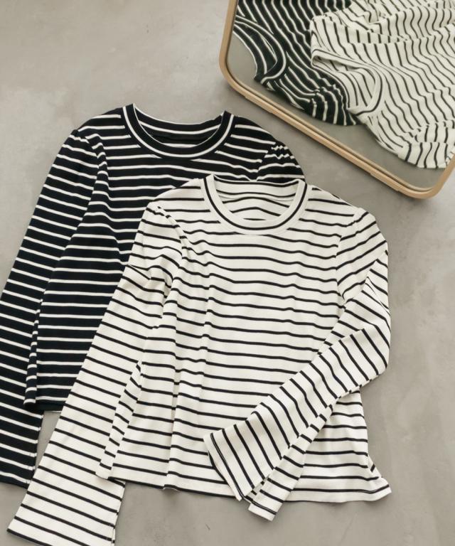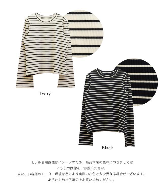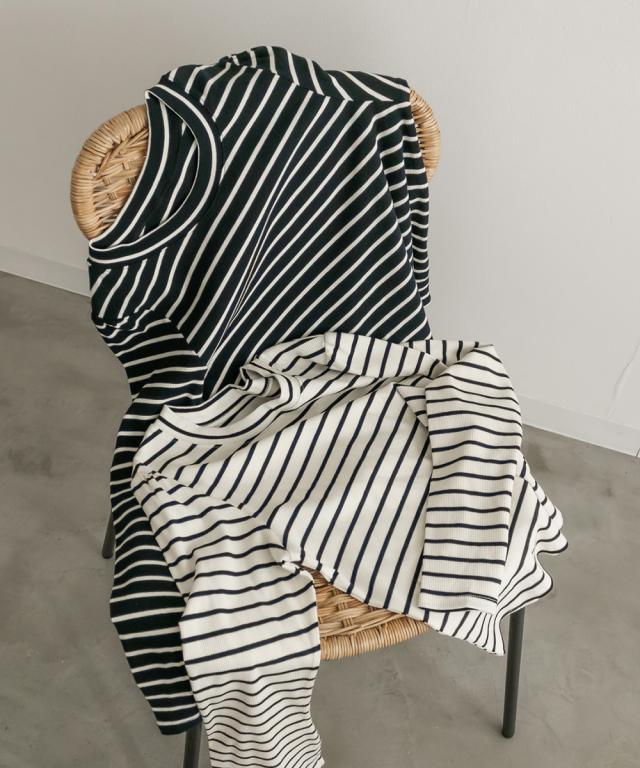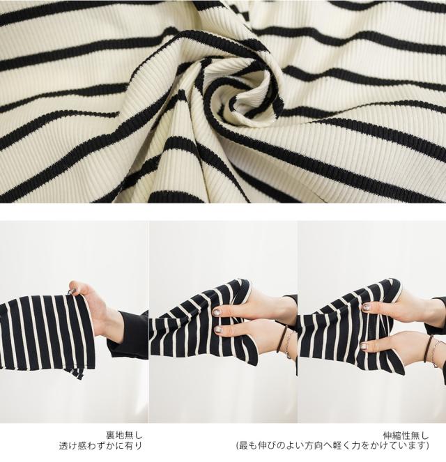 | 伸縮性のあるボーダーのリブカットソーです。 |