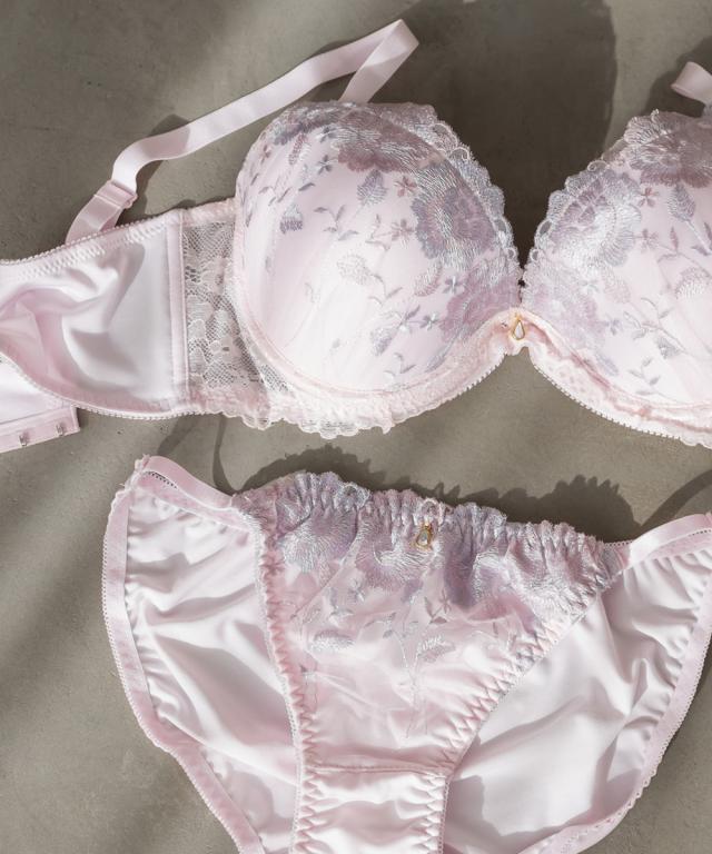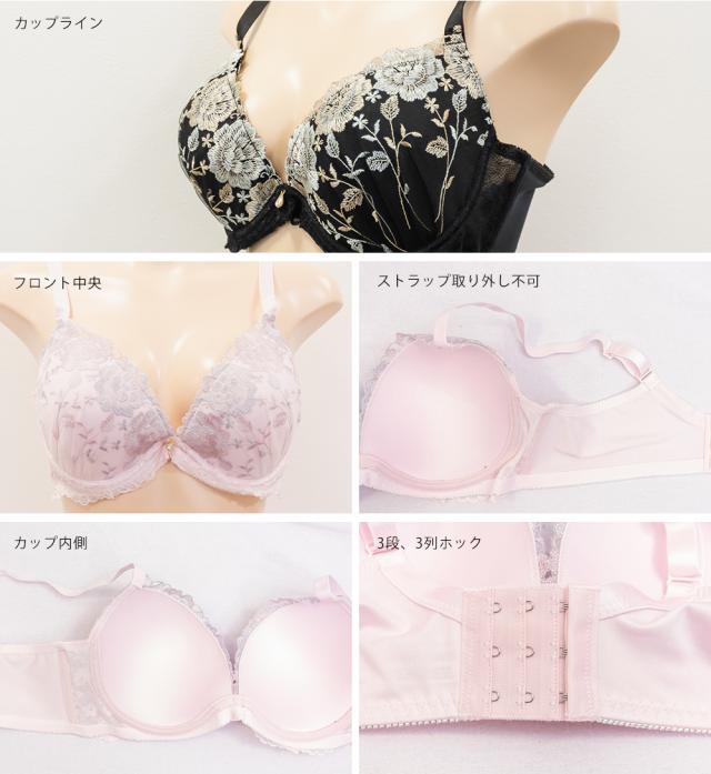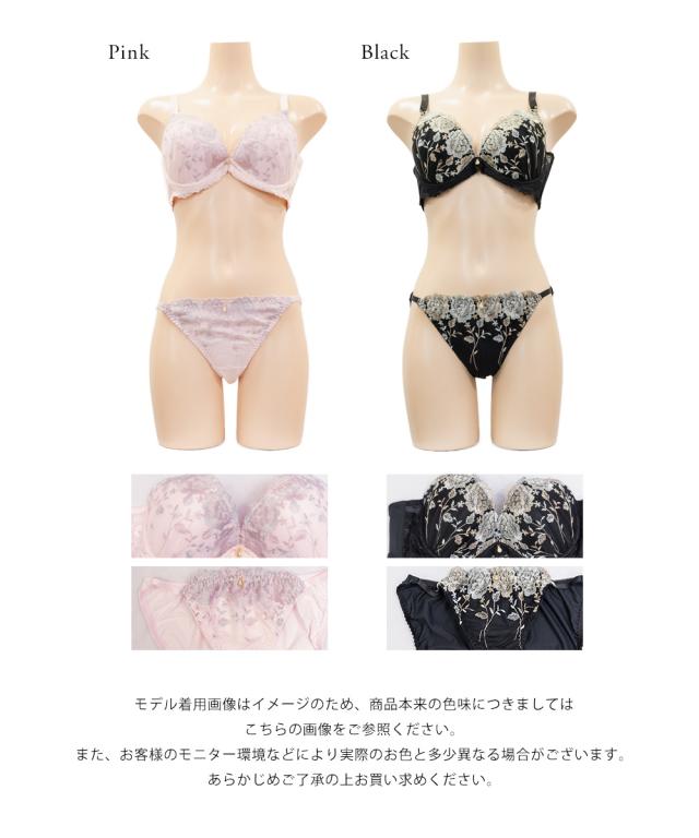 大きいサイズ/レディース/D85/D90/D95/E85/E90/E95/F85/F90/F95/G85/G90/G95/脇高ブルーム刺繍ソフトワイヤーブラジャー&ショーツセット